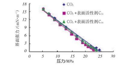 圖4表面活性劑對CO2與大慶原油混相壓力的影響