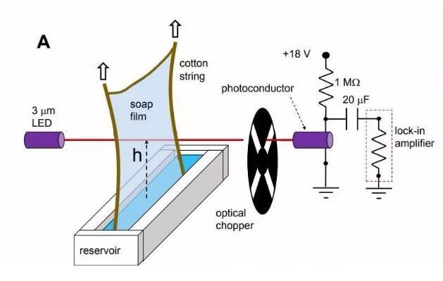 他們通過照亮肥皂泡來(lái)測(cè)量膜的厚度,還測(cè)量了肥皂泡配方中使用不同聚合物的分子量,
