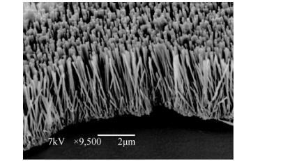 納米ZnO是一種重要的光催化材料,具有成本低廉、生物相容性較好和電子傳遞特性較高的優(yōu)點,因此在太陽能電池、傳感器、光電器件等方面都有廣泛應用。本實驗采用水熱合成法定向生長ZnO納米線并用原子力顯微鏡(AFM)和掃描電鏡(SEM)對其進行了表征,結果如圖2和圖3所示。