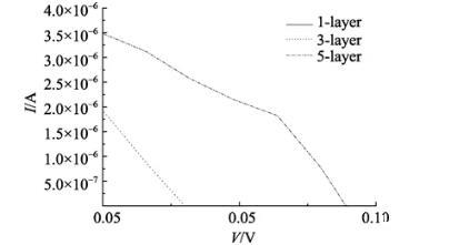 圖6不同層數(shù)石莼類囊體膜LB膜組裝成光電池的I-V曲線