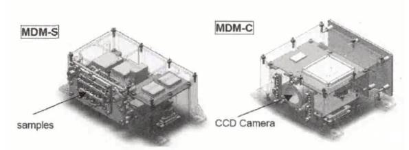 日本計(jì)劃在SLATS衛(wèi)星上搭載環(huán)境效應(yīng)探測(cè)器,進(jìn)行空間環(huán)境的監(jiān)測(cè)及材料暴露試驗(yàn),這是首次在50 km軌道上開展材料暴露試驗(yàn)。該暴露試驗(yàn)通過兩個(gè)搭載模塊實(shí)施,分別為MDM-S和MDM-C(MDM為MateriasDegradation Monitor的縮寫),其中MDM-S是一個(gè)包含9種材料被動(dòng)暴露試驗(yàn)的樣品盒,而MDM-C是CCD,用于對(duì)暴露試驗(yàn)中樣品的退化情況進(jìn)行拍照。