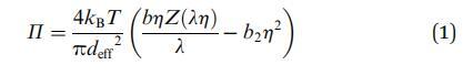 吸附在流體-流體界面上的粒子與 并產(chǎn)生表面壓力 (P),即 3D 系統(tǒng)中壓力的 2D 模擬。 通過擴(kuò)展這個(gè) 進(jìn)一步類比,也可以將這個(gè)表面壓力聯(lián)系起來 通過狀態(tài)方程到其他狀態(tài)參數(shù),如數(shù)密度和溫度。 用于吸附膠體顆粒 在流體-流體界面上,最簡單的近似可能是 2D硬盤。 狀態(tài)方程 (EOS) 為一個(gè) 組件系統(tǒng)根據(jù)密度相關(guān)性給出 壓縮系數(shù) Z。文獻(xiàn)中充滿了 提供表達(dá)的多種方法 EOS 2D 硬盤液。 Mulero 等人 27,28 提供了一個(gè)簡潔的 回顧和比較所有這些狀態(tài)方程。