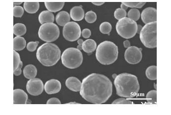 采用掃描電子顯微鏡對實施例1所制備的霧化粉體進行形貌表征,結(jié)果如圖1所示。從圖1可以看出,霧化粉體的粒徑較小,較多的粒徑在50μm左右,在霧化粉體表面粘合有金屬摻雜劑。