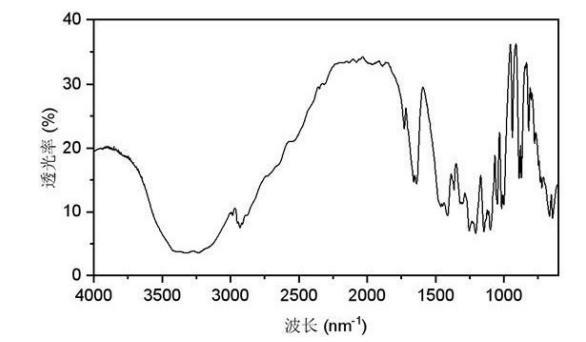 使用ATR附件,掃描背景去除雜峰后將取少量多羥基烷基季銨鹽放在測試位置開始進(jìn)行紅外光譜掃描。在3300nm1附近的寬吸收峰可歸屬為羥基吸收峰,亞甲基的吸收峰分別位于2900nm1和1200~1400nm1附近,1100nm1處為CF的吸收峰區(qū)。
