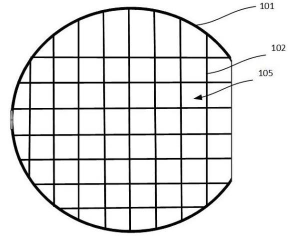 步驟2),依次對(duì)各組中的腐蝕區(qū)域105內(nèi)的晶圓104表面進(jìn)行腐蝕,直至完成整片晶圓104的腐蝕。