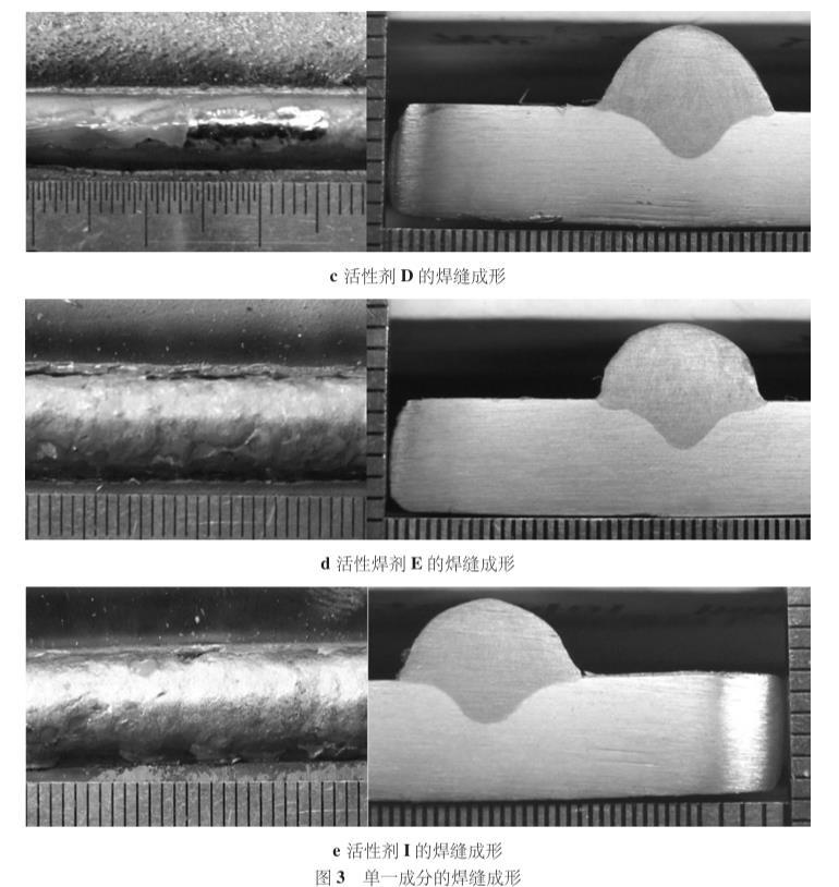 (4)活性劑成分不同,焊縫熔深增加程度也不同。