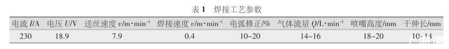 采用CMT一元化焊接工藝,通過正交試驗確定主要影響因素,焊接規(guī)范參數(shù)如表1所示。