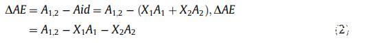 其中 A1,2 是 mma,Aid 是理想的混合單層,X1 和 X2 分別是組分 1 和 2 的摩爾分數(shù)。 A1 和 A2 是相同表面壓力下每分子純單分子層的相應(yīng)面積。 DAE 值變?yōu)榱?當物質(zhì)形成理想混合物或不混溶時 (瓊斯和查普曼,1996 年)。