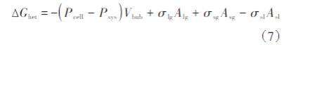 其中,Pcell是泡孔中的氣體壓力,Pa;Psys是周圍系統(tǒng)的壓力,Pa;A是表面積,m2;σ是界面張力,mN/m;l、g、s分別表示熔體、氣體和固體相。