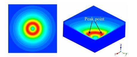 電弧剪切應(yīng)力的存在是由于電弧等離子體中既有動(dòng)能又有動(dòng)量。當(dāng)電弧等離子體從熔池中心撞擊熔池時(shí),熔池表面會(huì)受到向外的剪切應(yīng)力。類似于表面張力,熔池表面的剪切應(yīng)力促使液態(tài)金屬向外流動(dòng)。它通常在靜止焊接或低速焊接過程中呈軸對(duì)稱分布,如圖3所示,從電弧中心到邊界,電弧剪切應(yīng)力先急劇增加后減小。在高焊接速度下,電弧沿焊接方向變形,產(chǎn)生非軸對(duì)稱分布的電弧剪切應(yīng)力,此時(shí)可以假設(shè)電弧剪切應(yīng)力分布在一個(gè)雙橢圓區(qū)域。