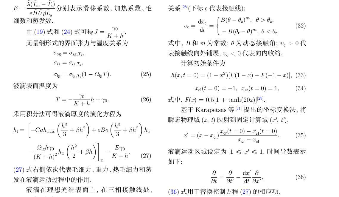 液滴運(yùn)動(dòng)區(qū)域設(shè)定為–1≤x'≤1,時(shí)間導(dǎo)數(shù)表示如下: