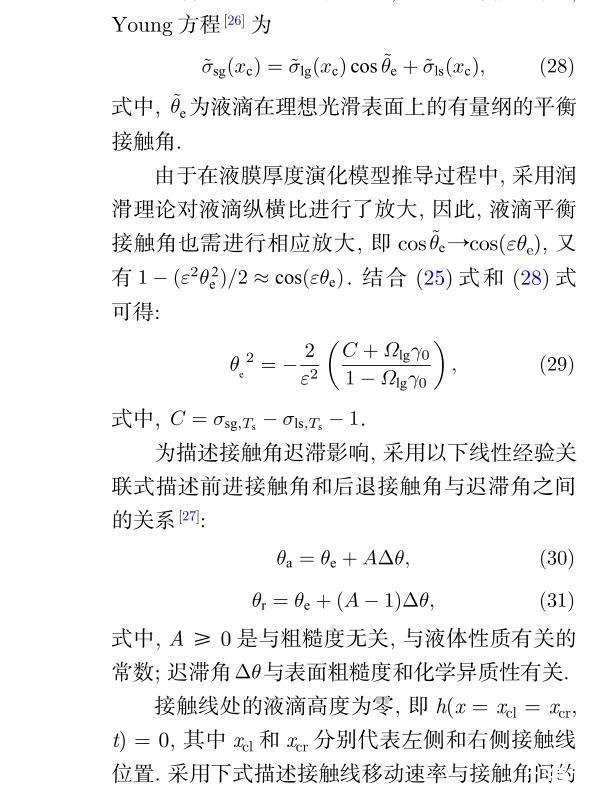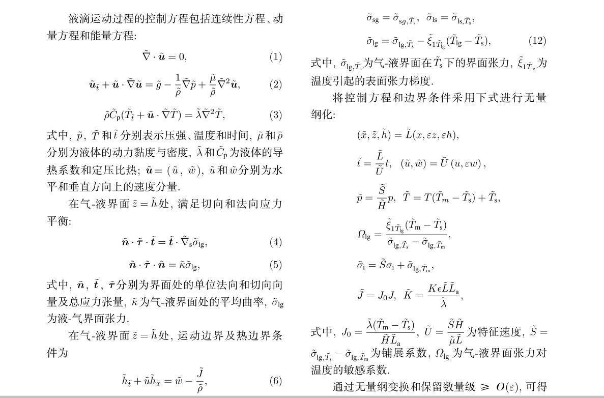 接觸角遲滯時(shí)氣~液界面張力的溫度敏感性對(duì)液滴蒸發(fā)過(guò)程的影響——理論模型及計(jì)算方法