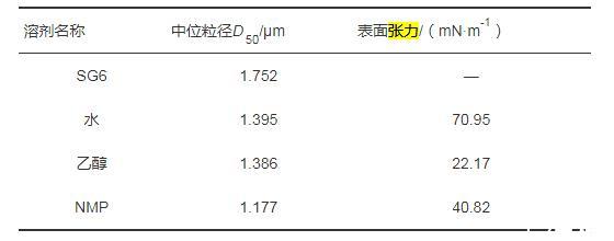 不同表面張力的球磨溶劑對(duì)微晶石墨粒徑的影響