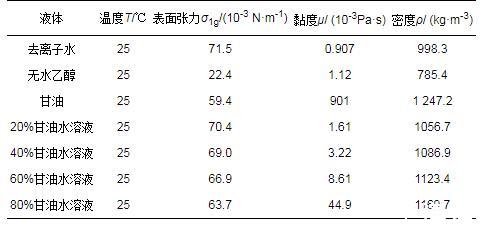 目前文獻中關(guān)于各類因素對液滴鋪展線速度和鋪展面積的影響,以及撞擊過程中液滴的表面能、動能和黏性耗散的變化的研究較少,因此本文采用實驗的方法研究了液滴的物性和操作條件對其撞擊固體表面過程中的鋪展直徑、鋪展速度和鋪展面積的影響,并結(jié)合能量法對表面能、動能和黏性耗散在撞擊過程中的變化進行分析,以揭示液滴撞擊固體表面過程的特點。