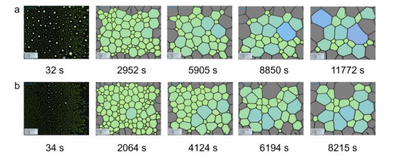 圖5(a)1 g/L C72-MPB和(b)2 g/L C72-MPB表面活性劑溶液從泡沫峰值高度后的不同時間的泡沫形態(tài)