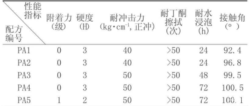 在制得不同配方的涂料之后(PA1-PA5),我們進(jìn)一步制備了相應(yīng)的水性氟丙樹脂涂料涂膜,其性能指標(biāo)見表3。