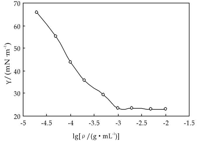 FSS的質(zhì)量濃度(ρ)對(duì)其在水中的表面張力(γ)的影響如圖2所示。