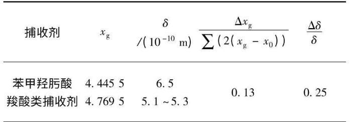 由表4可知,733與苯甲羥肟酸組合藥劑的浮選效果好于油酸與苯甲羥肟酸的組合藥劑。下面以這兩種藥劑為例,討論基團電負性和極性基斷面尺寸與協(xié)同效應(yīng)的關(guān)系。藥劑基團電負性和極性基斷面尺寸都影響藥劑選擇性,經(jīng)推導(dǎo),兩種捕收劑的參數(shù)若滿足,則極性基斷面尺寸是藥劑選擇性的主要影響因素,其中,Δxg為基團電負性的差值,取正值;xg為基團電負性值,計算時代入兩者中的較大值;x0為氧的負電性;δ為極性基斷面尺寸,10-10m;Δδ為極性基斷面尺寸的差值,取正值。
