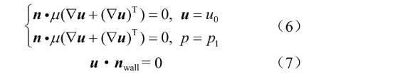 式中n表示固體壁面的單位法向量;u0表示入口處的速度,m/s;p1表示出口處的壓力,Pa,nwall表示封閉邊界的單位法向量。