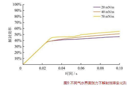 圖9不同氣水界面張力下解封效率變化圖