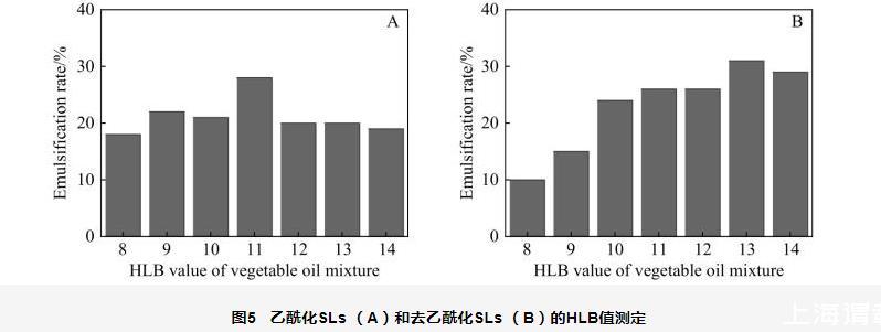 圖5乙?;疭Ls(A)和去乙?;疭Ls(B)的HLB值測(cè)定