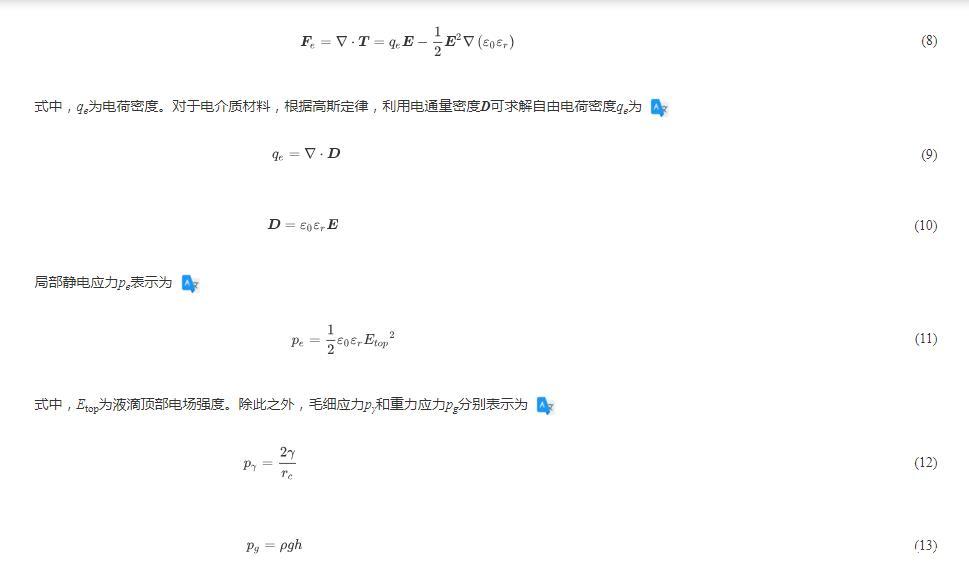 式中,ε0為真空介電常數(shù),εr為液體相對介電常數(shù),ke為液滴導電率。本實驗全程在空氣常溫環(huán)境下進行,此環(huán)境下去離子水(ke=5×10-6 S/m)的介電弛豫時間τe大約為在1.77μs,而液滴撞擊過程維持了幾十毫秒,遠遠大于介電弛豫時間,因此印證液滴在撞擊過程中實現(xiàn)了充分的電荷積累,其撞擊行為深受電流體力學影響。
