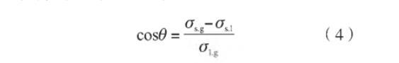 承托板在測試過程中與玻璃熔體產(chǎn)生直接接觸,承托板材質(zhì)首先要滿足測試溫度的要求,符合玻璃熔體測試溫度要求并易獲得的材質(zhì)有鉑銠合金、石英、剛玉和石墨。材料表面與玻璃熔體產(chǎn)生潤濕與非潤濕問題,潤濕能力由相鄰兩相的自由表面能決定,用表面張力的大小來表示[9]。當固體、液體和氣體三者之間相互作用力達到平衡時,就必須服從式(4):