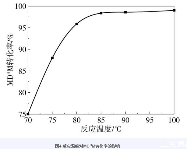 圖4反應溫度對MDHM轉(zhuǎn)化率的影響