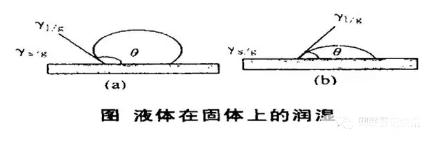 接觸角就是停留在固體表面的液滴,形成固、液、氣三個(gè)界面,做氣/液界面的切線,與經(jīng)過液體內(nèi)部和固體表面的夾角。