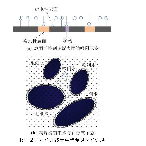 圖5表面活性劑改善浮選精煤脫水機理