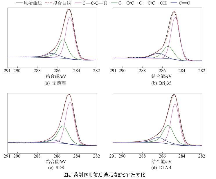 表4藥劑作用前后煤表面元素含量XPS寬掃結(jié)果