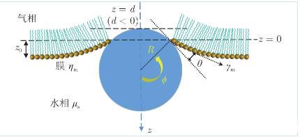顆粒的水動(dòng)力學(xué)阻力系數(shù)取決于顆粒在水相中的浸沒(méi)程度(圖5,以顆粒暴露在空氣中的高度d表示)。顆粒的平衡位置取決于重力、浮力及膜施加的表面張力。重力G為: