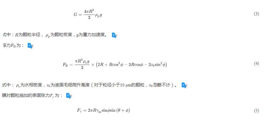 圖5顆粒在肺表面活性劑膜界面上的浸沒(méi)程度及顆粒所受表面張力拉力