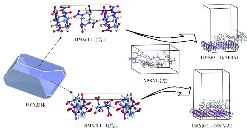 圖2 HMX晶體及其吸附NPBA界面模型