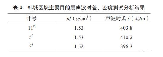表4韓城區(qū)塊主要目的層聲波時(shí)差、密度測(cè)試分析結(jié)果