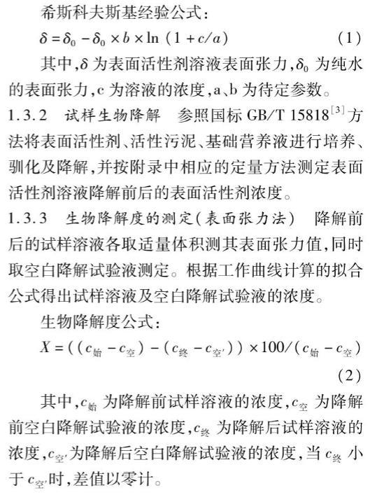 表面活性劑生物降解度測定方法種類及表面張力法的優(yōu)勢——摘要、實驗部分