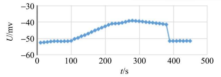 金屬吊環(huán)這一運動過程中電壓值也趨于平穩(wěn),對應(yīng)于圖2中380~450 s這一時間段的變化曲線.