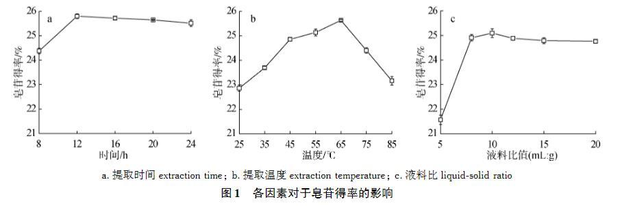 2.1水浸提肥皂莢皂苷的單因素試驗結(jié)果