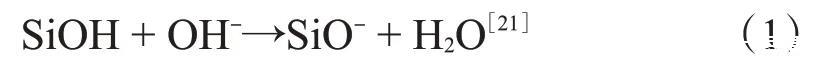 模擬地層水配制的納米SiO2/SDS體系的pH值在8.5左右,此時(shí),納米SiO2表面的羥基會(huì)和OH-發(fā)生如下反應(yīng):