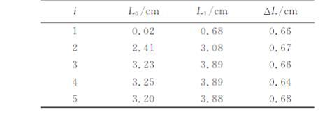 4)記錄水膜剛好被拉破時標尺的讀數L?,計算得到彈簧的伸長量ΔL,實驗結果如表1所示。