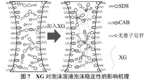 2.3 XG對(duì)泡沫溶液泡沫穩(wěn)定性的影響機(jī)理