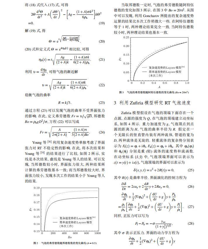 本文分別利用Sohn提出的簡單速度勢的Layzer模型和Zufiria模型研究界面張力對(duì)RT不穩(wěn)定性增長的影響,并對(duì)不同模型進(jìn)行比較。
