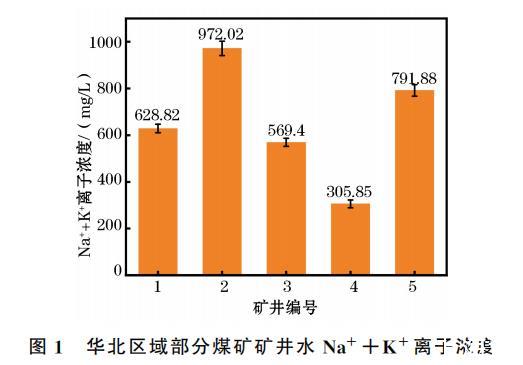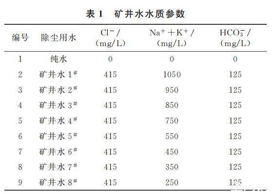 根據(jù)調(diào)研結(jié)果配制9組溶液,包括8組Na+、K+離子濃度不同的礦井水和1組純水,溶液配比見表1。配制溶液時(shí),取適量去離子水,向其中投加CaCl2、MgCl2、Ca(HCO3)2 控制礦井水硬度,向其中投加NaCl、HCl和NaOH控制礦井水的pH為7.5,向水溶液添加其他必需微量離子和雜質(zhì),靜置2 h待用。
