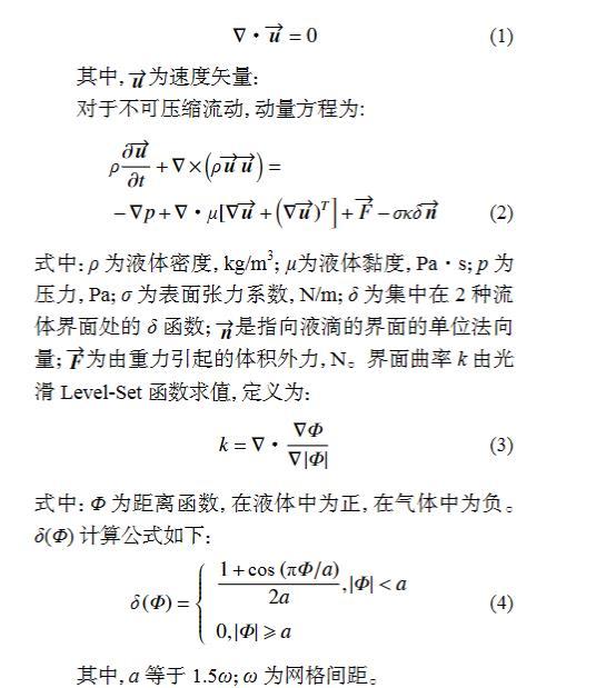 表6研究表面張力和接觸角影響時(shí)的條件參數(shù)設(shè)置