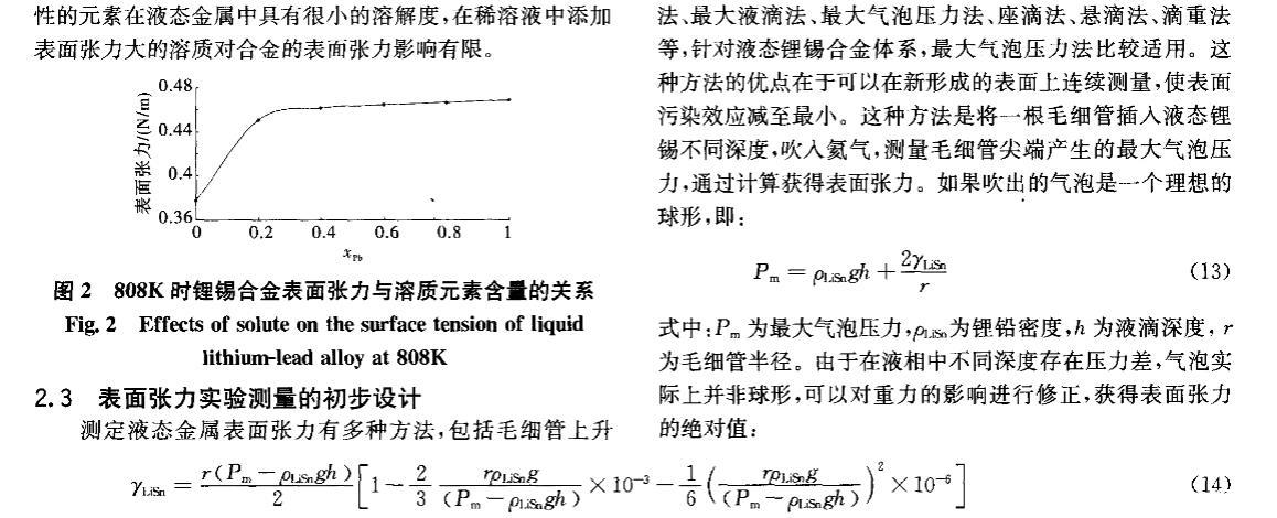 > 基于最大氣泡壓力方法測量液態(tài)鋰錫合金表面張力