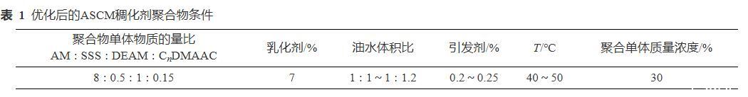 表1優(yōu)化后的ASCM稠化劑聚合物條件