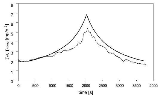 圖8代表性壓縮-吸附b-乳球蛋白(c=0.01 wt%)的膨脹實驗,壓縮低于每個分子的面積。 通過擴散量和壓縮量(Gcomp)和橢偏儀(Gell)測量的預(yù)期吸附量。
