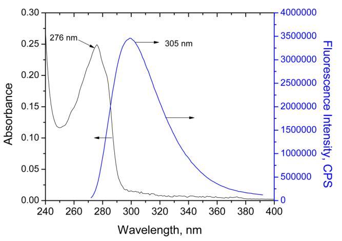 圖4.紫外線 ? vis(5×10 ? 5米)和熒光(5×10 ? 7 M;λ激發(fā)=270 nm,激發(fā)和發(fā)射處的狹縫寬度,分別為5和5 nm)人胰島素水溶液的光譜。