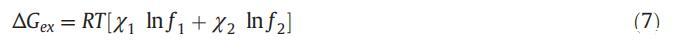 活度系數(shù)以及膠束摩爾分?jǐn)?shù)也可用于使用式(7)[56]計(jì)算混合的過量自由能(ΔGex):