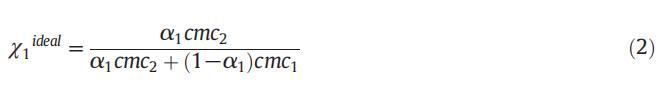 在理想狀態(tài)下,膠束摩爾分?jǐn)?shù)(χ理想)已通過公式(2)[50]計(jì)算得出:
